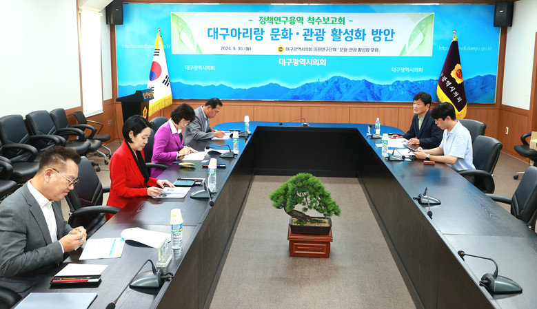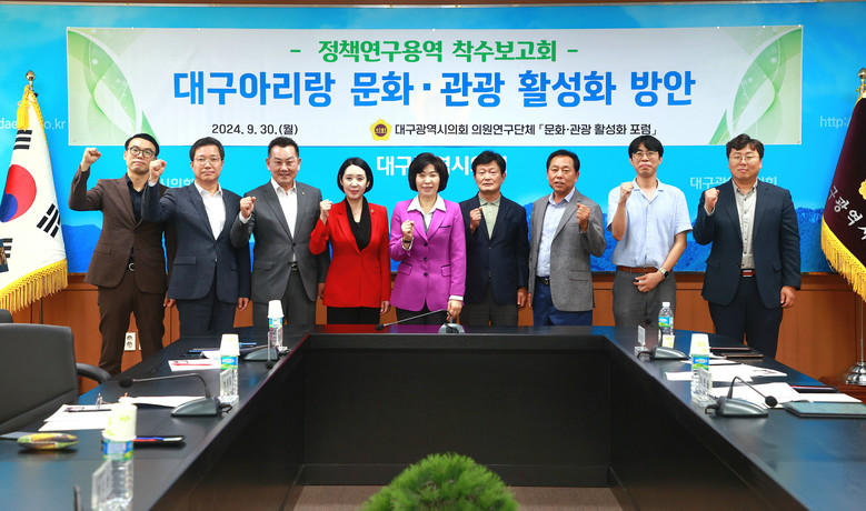 이번 연구 주제를 제안한 박종필 의원은 “본 연구를 통해 대구아리랑이 지역의 대표 문화콘텐츠로 자리매김할 수 있도록 다양한 방안을 고민해 보겠다”고 밝혔다.