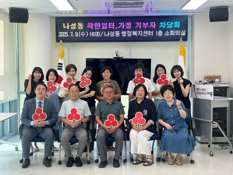 [세종 세계타임즈=이채봉 기자] 세종특별자치시 나성동지역사회보장협의체(공동위원장 박재혁·박찬양)가 9일 나성동 행정복지센터 소회의실에서 착한일터와 착한가정에 참여하는 기부자들을 초청해 감사의 마음을 전하는 차담회를 열었다.