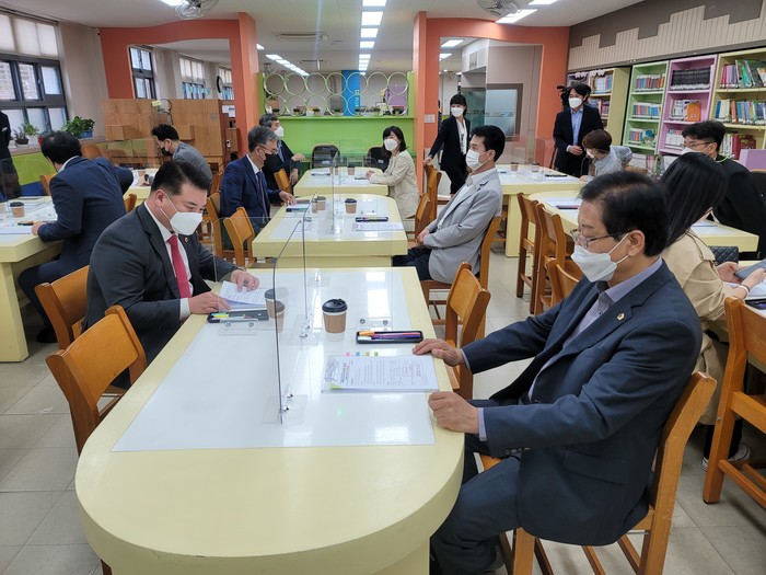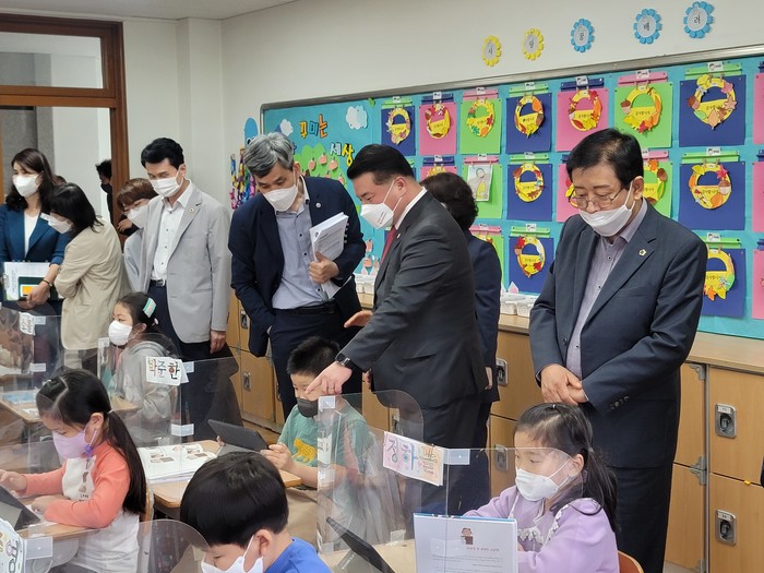 교육위원회는 안정적인 원격수업 진행을 위해 구축한 교실 무선랜 환경과 학생 개인별로 지급한 스마트기기, 원격수업 지원 공간 등 블렌디드 러닝 환경을 위한 시설을 둘러보면서, 디지털 교육환경에 대한 꾸준한 투자와 지원의 필요성을 공감했다.