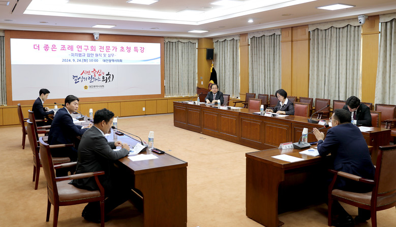 [대전 세계타임즈=이채봉 기자] 대전시의회 의원연구회인‘더 좋은 조례 연구회’(회장 김영삼 의원)는 24일 10시 시의회 소통실에서 전문가 초청 특강을 개최했다.
