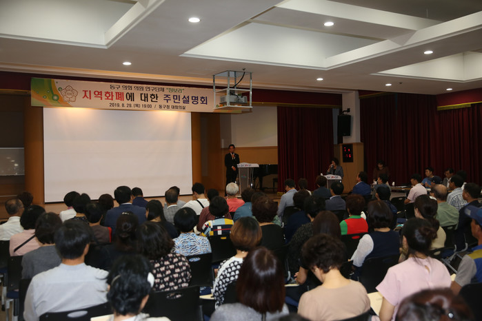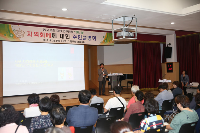 [동구=세계타임즈 한성국 기자] 대구광역시 동구의회 의원연구단체 ‘청보리’(대표 : 권상대)는 지난 29일(목) 19:00 동구청 대회의실에서 주민 200여명이 참석한 가운데 지역 화폐에 대한 주민설명회를 개최 하였다.