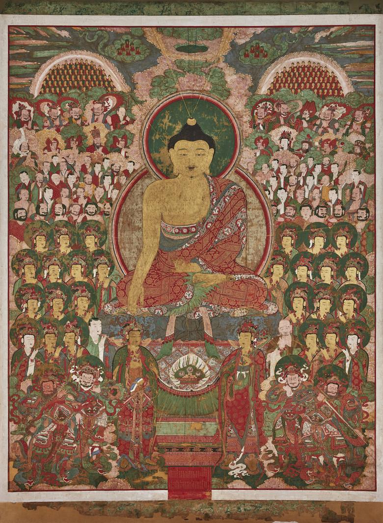 국보 “합천 해인사 영산회상도”는 비단 바탕에 채색으로 석가여래가 영취산에서 설법하는 장면을 묘사한 것으로 화면 하단의 화기(畵記)를 통해 1729년(조선 영조 5)이라는 제작 연대와 수화승인 의겸(義謙)을 비롯한 여러 화승들이 제작에 참여한 것을 알 수 있다.