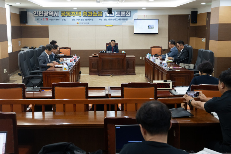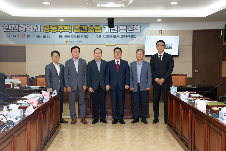 인천시의회 건설교통위원회는 22일 건교위 회의실에서 김대중 위원장을 비롯해 박창호(산업경제위원회) 의원, 이용호 한국건설기술연구원 연구위원, 김현석 에이디종합건축사무소 사업본부장, 이호찬 국민의힘 인천시당 원도심개발특별위원회 위원장, 이선종 전국아파트입주자대표회의연합회 인천지부장, 심일수 주택정책과장, 인천시 관계자 등이 참석한 가운데‘인천광역시 공동주택 층간소음 개선 토론회’를 개최했다.