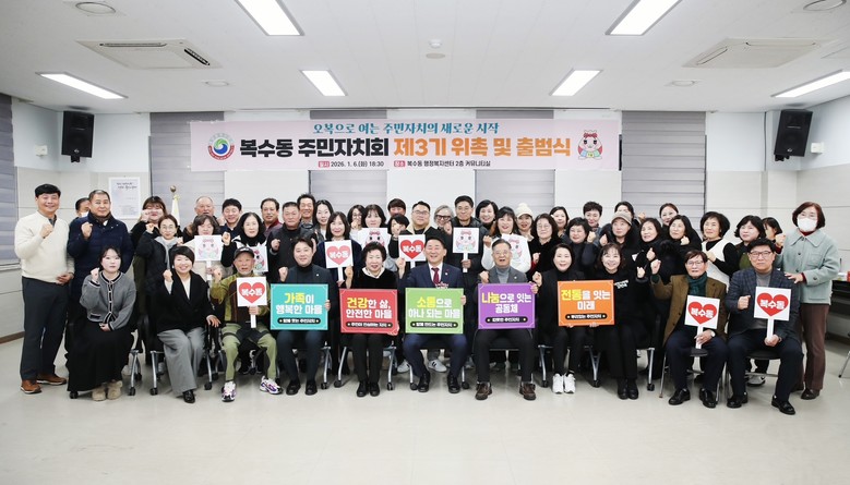 ▲ 복수동 주민자치회는 지난 6일 위원 44명이 참여한 가운데 발대식을 열었다. 참석자들은 ‘오복으로 여는 주민자치의 새로운 시작’을 주제로 주민 주도의 자치 실현 각오를 다졌다.