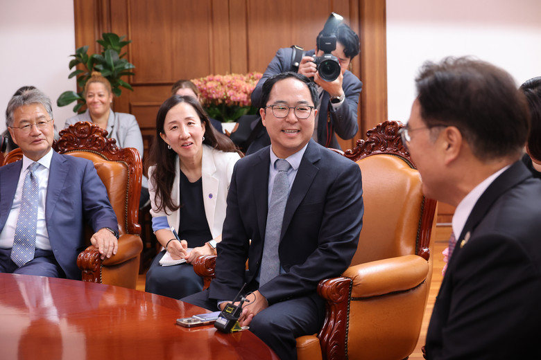 [세계타임즈 = 진정화 기자] 우원식 국회의장은 18일 방한 중인 '한국계' 앤디 김 미국 상원의원에게 "(한국에) 새 정부가 들어선 이후 25일 첫 한미정상회담이 예정돼 있다"며 "성공적으로 개최되도록 많이 도와달라"고 요청했다.