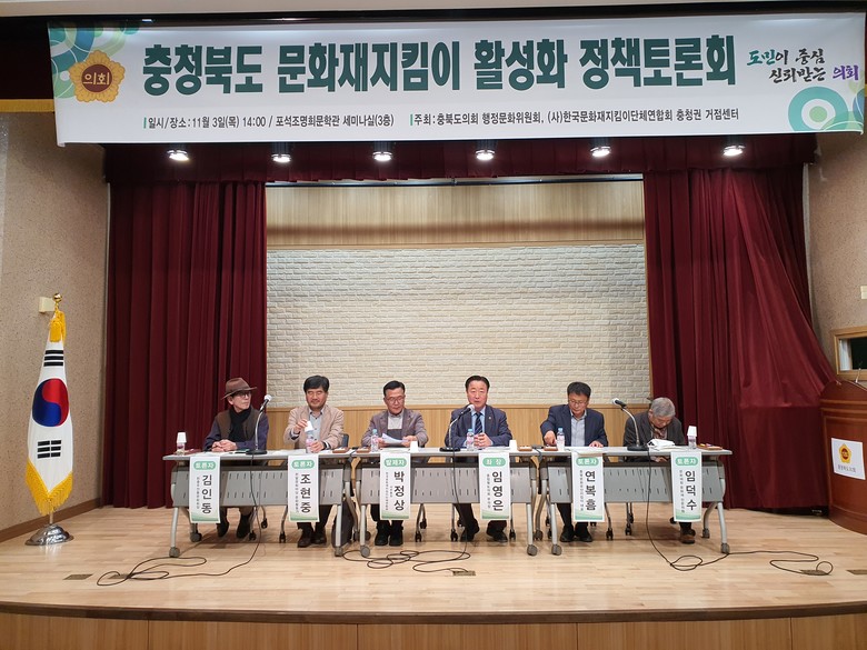 [충북 세계타임즈=이현진 기자] 충북도의회 행정문화위원회(위원장 노금식)는 11월 3일(목), 진천 포석조명희문학관 세미나실에서 ‘충청북도 문화재지킴이 활성화 정책토론회’를 개최하여 도민과 전문가의 의견을 수렴하는 시간을 가졌다.