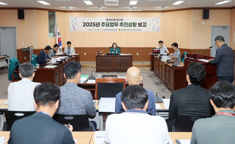 [충남 세계타임즈=이현진 기자] 충남도의회 농수산해양위원회(위원장 이연희, 이하 농수해위)는 24일 충남도 농업기술원 인삼약초연구소에서 제360회 임시회 제4차 농수산해양위원회 회의를 개최했다. 이날 농수해위는 충남도 남부출장소를 비롯해 농업기술원, 수산자원연구소 소관 2025회계연도 주요업무 추진상황을 보고 받았다.