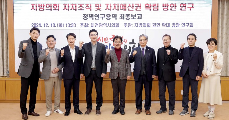 대전시의회는 진정한 자치분권의 핵심인 자치조직 및 예산권에 대한 국내외 사례를 비교 분석하고 법과 제도적 과제를 도출해 지방의회의 독립성과 효율성을 증대할 방안들이 제시된 이번 연구용역의 결과물을 바탕으로, 지방의회의 실질적인 권한 확대와 주민 중심의 자치분권 실현을 위한 정책 방안을 모색해 나갈 계획이다.