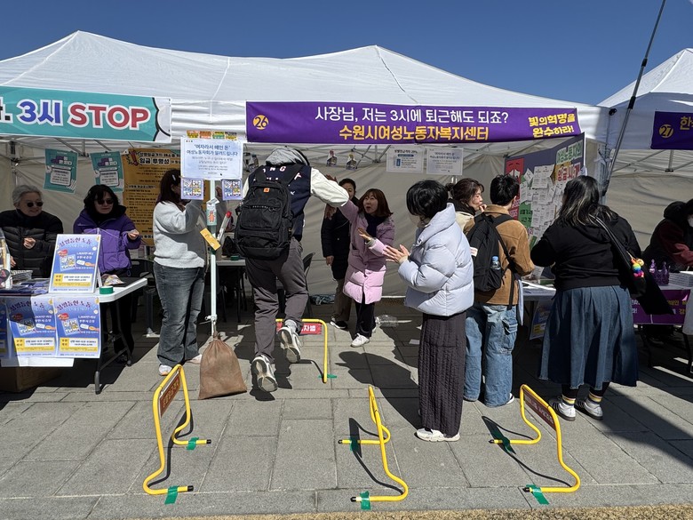 ‘구조적 차별 뛰어넘기 허들’, ‘성차별 뿌셔뿌셔’ 등 참여형 프로그램을 진행하며 시민들이 성평등과 노동권 문제를 쉽고 흥미롭게 이해하도록 했다. 여성노동자복지센터 사회관계망서비스(SNS)를 팔로우한 참여자에게는 홍보 물품을 제공하며 참여를 독려했다. 센터의 역할과 사업도 함께 알렸다.