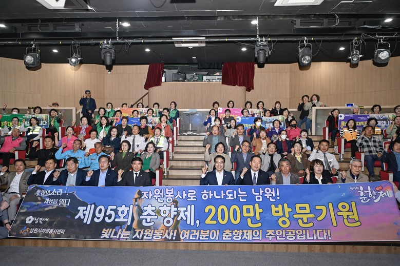 한편 4월 30일부터 7일간 개최되는 제95회 춘향제에서는 26개 자원봉사 단체 및 개인 등 자원봉사자 2천 1백여명이 참여하여 개·폐막공연, 대동 길놀이 행사 지원, 무더위쉼터 운영, 행사 안내, 수유실 운영, 교통질서 유지 및 환경정리 등 춘향제 행사장 일원에서 다양한 자원봉사를 펼칠 예정이다.