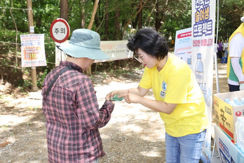 행사에 참여한 한 등산객은 “날씨가 습하고 무더운데 시원한 물과 복분자차까지 받아 정말 감사하다. 아이디어가 좋은 부채도 유용하게 쓰겠다”며 “이런 건강에 도움 되는 봉사가 많이 생기면 좋겠다”며 고마움을 표했다.