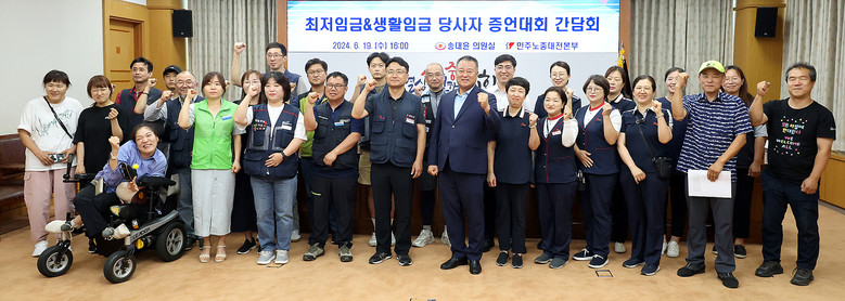[대전 세계타임즈=이채봉 기자] 대전시의회 송대윤 의원(더불어민주당, 유성구2)이 시의회 3층 소통실에서 생활임금 당사자의 목소리를 듣고 처우개선 방안을 모색하기 위한 간담회를 개최했다.