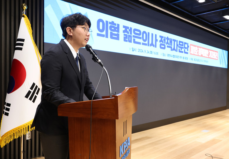 대한의사협회 채동영 홍보이사가 24일 오후 서울 용산구 의협회관에서 '젊은의사 정책자문단 첫 정책 제안 발표 기자회견을 하고 있다. 2024.9.24