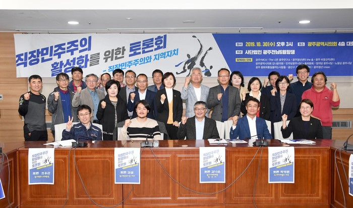 [광주=세계타임즈 손권일 기자] 사단법인 광주전남 6월 항쟁은 30일 오후 3시 시의회 대회의실에서 ‘직장민주주의와 지역자치’라는 주제로 토론회를 개최했다.
