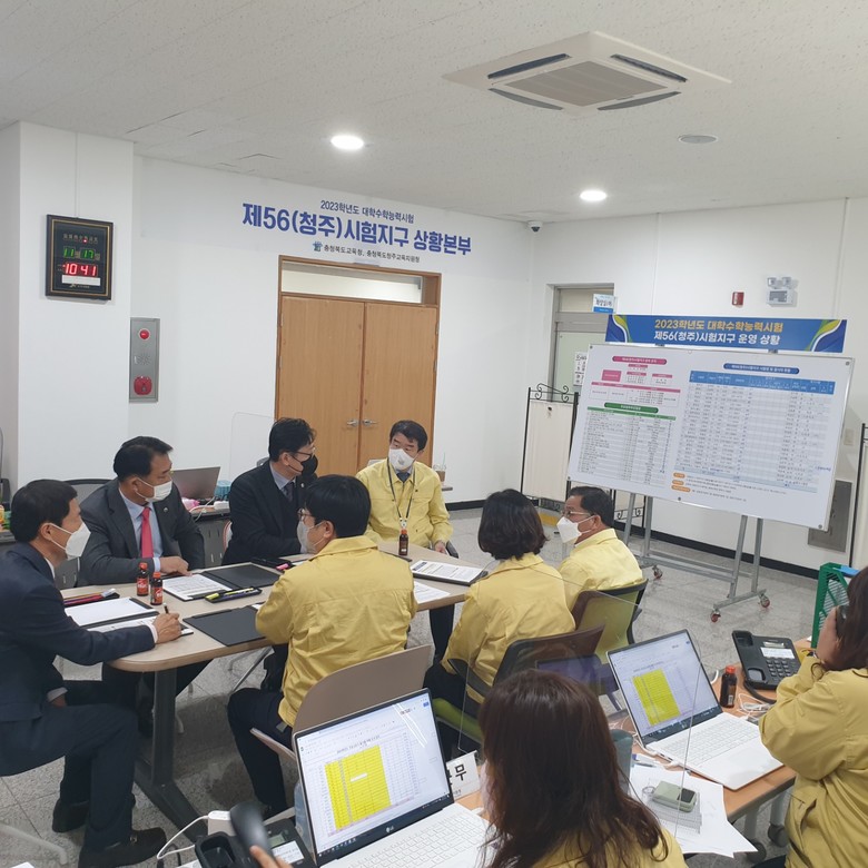 [충북 세계타임즈=이현진 기자] 충북도의회 교육위원회(위원장 김현문)가 17일 오전 청주교육지원청에 설치된 2023년도 대학수학능력시험 청주지역 상황본부를 방문했다.