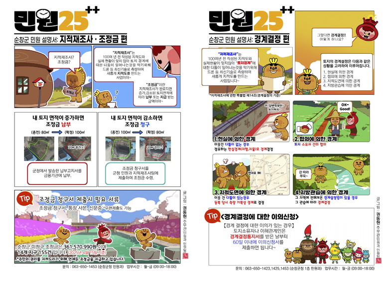 또한 군은 고령자나 다문화 이주여성 등 다양한 주민들이 사업 내용을 쉽게 이해할 수 있도록‘순창군 민원 안내 만화’를 제작했으며, 이를 우편과 문자(SMS)를 통해 발송해 지적재조사 사업을 적극 홍보하고 있다.