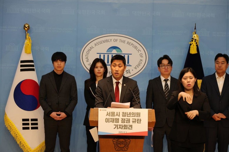 이날 기자회견은 ‘청년 서울시의원 이재명 정권 규탄’이라는 기차 하에 부동산 정책 실패와 전세대란, 고금리·고환율·고물가 ‘3고’ 경제 위기, 대장동 비리와 항소 포기 비판 등 세 가지 주제를 중심으로 진행됐으며, 현장에는 이상욱·이종배 서울시의원과 청년 정치인 이효진이 함께했다.