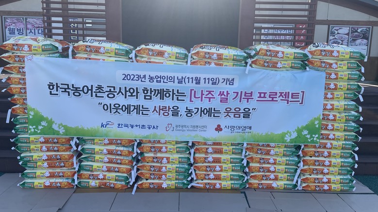 [세계타임즈 = 이영진 기자] 한국농어촌공사(사장 이병호)는 10일 농업인의 날(11.11)을 맞아 나주 동강 햅쌀 370포대(20kg 기준)를 광주·전남지역 사회복지시설에 전달했다.