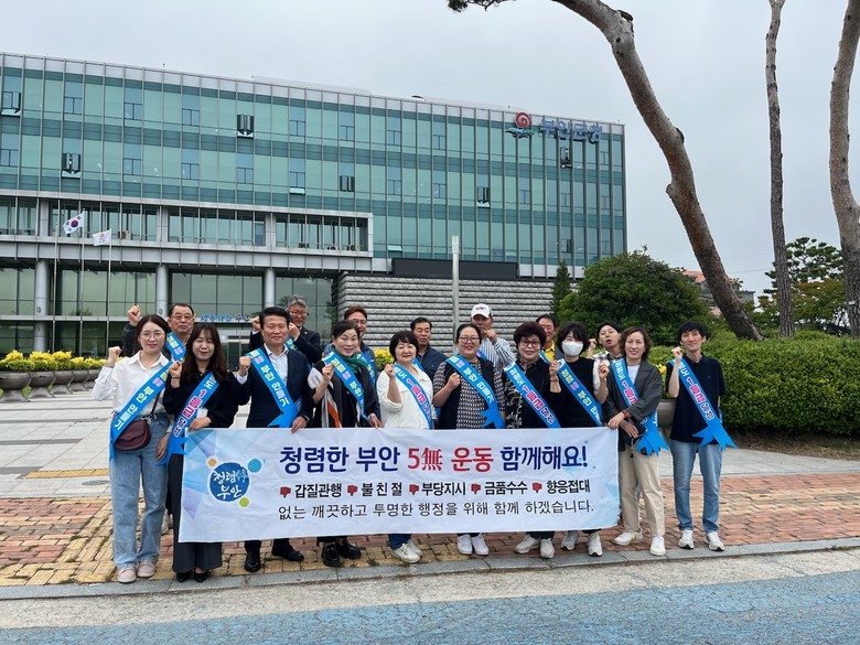 이번 캠페인에서 참석자들은 부안 5無운동(갑질근절,불친절,부당지시,금품수수,향응접대) 구호와 청렴실천을 강화하는 의지를 되새기고, 부안군 내 청렴문화가 뿌리 내리기 위해 민‧관 청렴협력체가 함께 노력할 것을 다짐했다.