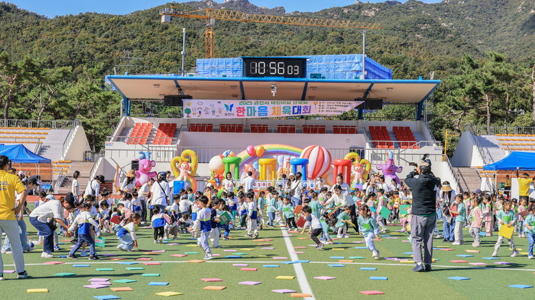 [과천시 세계타임즈=송민수 기자] 과천 관문체육공원에서 지난 16일, 지역 내 어린이집 영유아와 보육교직원 등 2천여 명이 참여한 ‘어린이집 한마음 체육대회’가 열렸다.