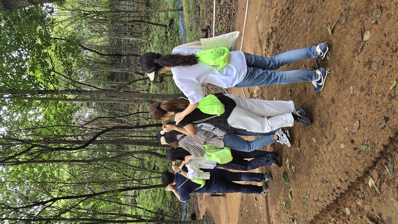 주요 내용은 ▲마음 열기(자기소개하고 자연에서 영감받아 자신만의 ‘자연이름’지으며 친밀감 형성) ▲맨손으로 하는 생태놀이(나무를 이용한 놀이, 자연 속에서 신체감각을 활용하는 체험 등) ▲교구를 활용한 생태놀이(숲키트를 활용한 놀이법) 등이다. 학부모들은 연수를 통해 숲을 탐색하며 계절에 따른 자연의 변화를 알고, 자연의 특징과 생물 간의 상호관계를 알아보는 시간을 가졌다.