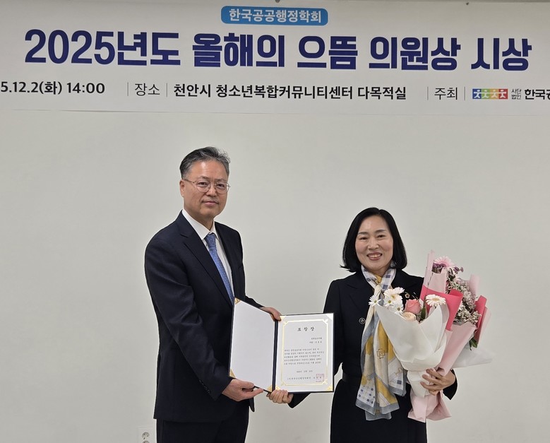 신순옥 충남도의원 ‘2025 올해의 으뜸 의원상’ 수상