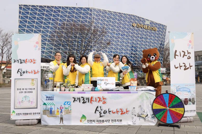 명절을 앞두고 지역경제를 살리고자 전주 풍남문시장 상인회(회장 김홍기)와 지속적인 교류를 해 온 신천지 자원봉사단 전주지부 (지부장 최중일 이하 전주 지부) 회원들이 그 주인공이다.