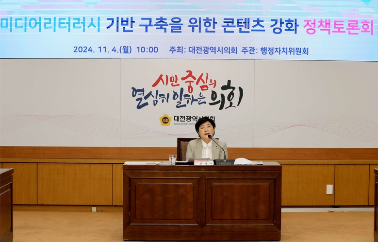 [대전 세계타임즈=이채봉 기자] 대전시의회 행정자치위원회 안경자 의원(국민의힘, 비례대표)은 4일 대전시의회 소통실에서 ‘미디어리터러시 기반 구축을 위한 콘텐츠 강화’정책토론회를 개최했다.