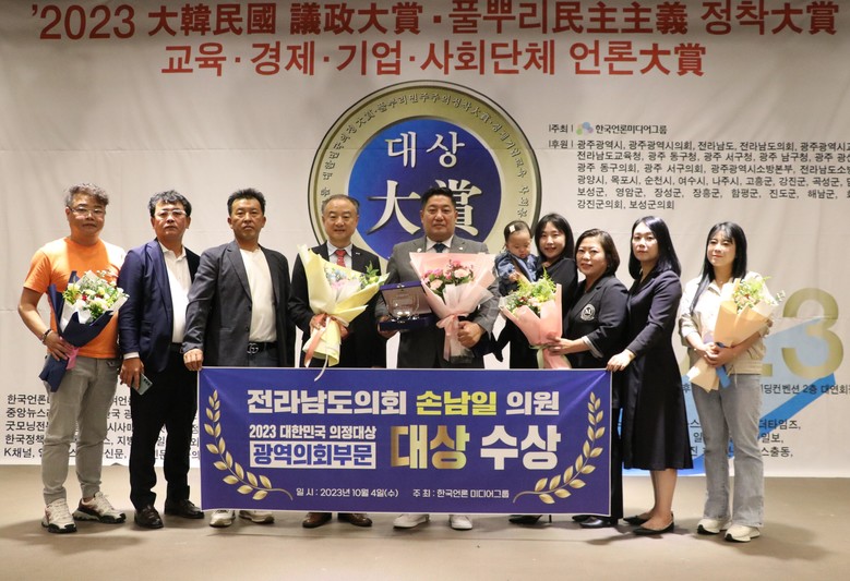 [전남 세계타임즈=우덕현 기자] 전남도의회 손남일 도의원(더불어민주당·영암2)이 4일 열린 한국언론미디어그룹 7주년 기념식에서 ‘2023 대한민국 의정대상(광역의회 부문)’을 수상했다.