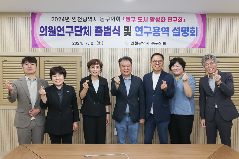 [동구 세계타임즈=심하린 기자] 인천 동구의회 의원연구단체 『동구 도시 활성화 연구회』는 지난 2일 동구의회 세미나실에서 출범식을 개최했다고 밝혔다.