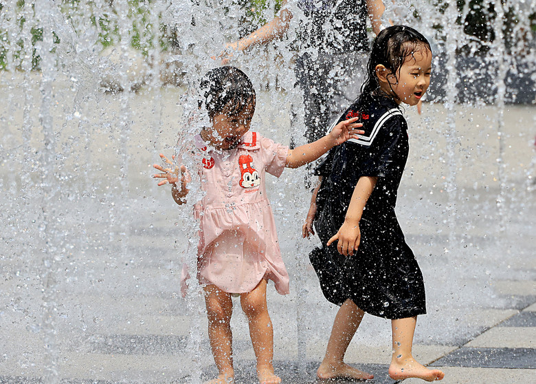 덥고 습한 공기 유입으로 찜통더위가 찾아온 21일 서울 성동구 서울숲에서 어린이들이 분수 물줄기에 즐거워하고 있다. 2025.5.21