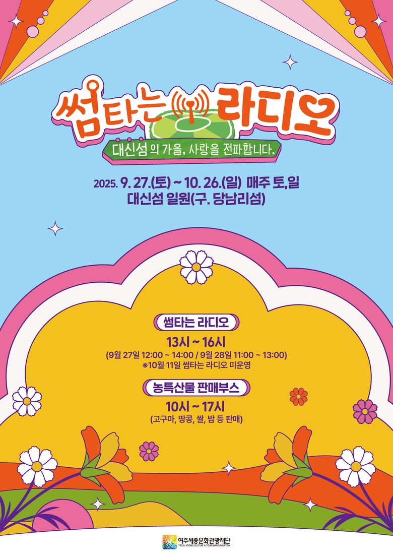이번 행사의 가장 큰 특징은 여주 시민과 관광객이 함께 즐길 수 있는 라이브 프로그램 ‘썸타는 라디오’다. 여주시민 DJ가 매회 다른 테마로 진행하며 생생한 토크와 음악, 사연 소개 등으로 관객과 소통한다.