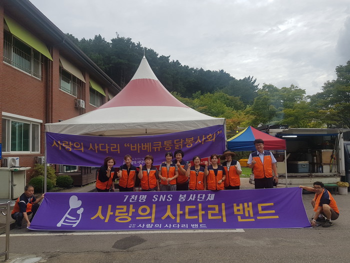 [대전=세계타임즈 이장성 기자] 7천명 SNS 대전시 봉사단체 사랑의 사다리 밴드(리더 이정제)는 28일 오후1시 유성구 용계동에 위치한 중증장애인거주시설 성세재활원(원장 김원식)의 중증장애인들에게 바비큐통닭봉사로 우리 사회의 따뜻한 사랑을 전달하였다.