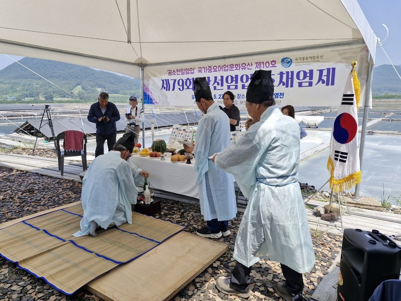 [부안군=세계타임즈 = 이영임 기자] 부안군은 23일 ㈜남선염업에서 그 해의 첫 소금을 채취하는 날에 염부들의 안녕과 소금 생산의 풍년을 기원하는 제79회 초채염제가 ‘햇볕과 바람과 염부들의 정직한 땅방울’이라는 주제로 개최됐다고 밝혔다.