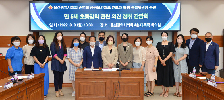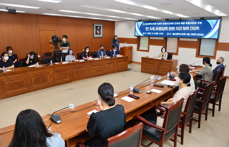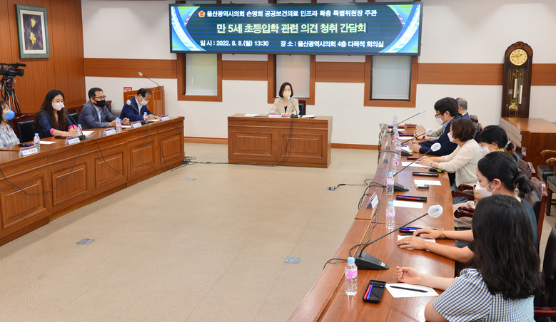 [울산 세계타임즈=이호근 기자] 울산광역시의회 손명희 위원장은 8일 오후 1시 30분, 시의회 4층 다목적회의실에서 만 5세 초등학교 입학 관련 학부모 의견 청취 간담회를 가졌다.