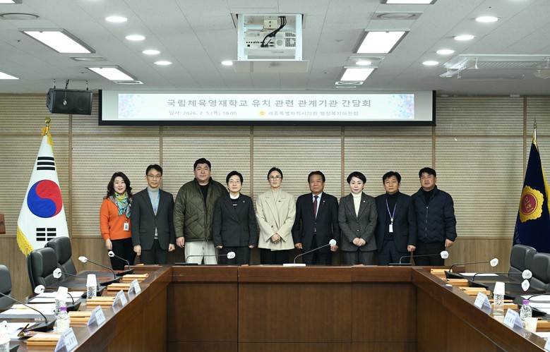 [세종 세계타임즈=이채봉 기자] 세종특별자치시의회(의장 임채성) 행정복지위원회(위원장 김현미)는 5일 '국립체육영재학교 유치 관련 관계기관 간담회'를 개최하고, 유치 확정을 위한 시청과 교육청의 구체적인 협력 방안을 모색했다.