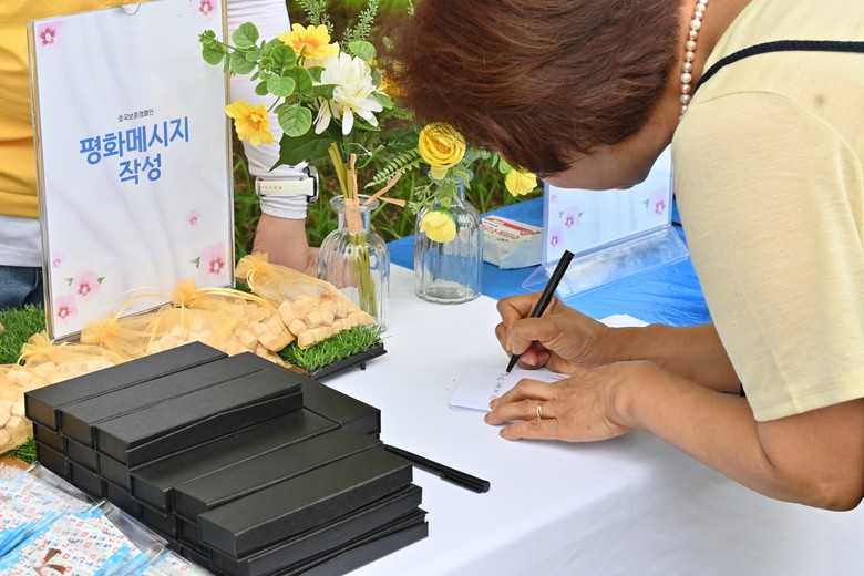 행사장 한편에서는 참가자들이 직접 작성한 평화 메시지가 전시돼 눈길을 끌었다. ‘희생에 감사하며 은혜 잊지 않겠습니다’, ‘나라를 지켜주셔서 감사합니다’ 등의 문구가 기록됐다.
