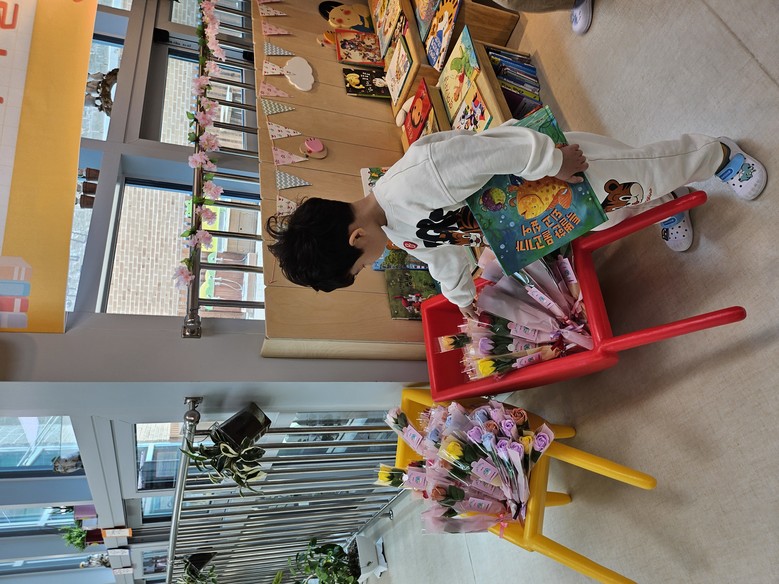 이에 배곧새봄유치원에서는 2023년부터 4월 23일을‘새봄 책 드림마켓’의 날로 정하고 책을 나누는 모든 공동체 구성원에게 꽃을 선물하고 있다. 이날은 유아, 학부모, 교직원이 서로 나누고 싶은 책을 마켓에 내어놓고 각자가 희망하는 도서를 가정으로 가져갈 수 있다.
