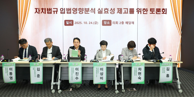 이번 토론회는 지방자치단체 간의 협력 모델을 제시하고, 중앙과 지방의 입법영향분석 시스템을 비교하며 자치입법의 발전 방향을 모색하는 뜻깊은 자리가 되었다. 양 의회는 앞으로도 정기적인 교류를 통해 지방분권 강화를 위한 노력을 지속할 예정이다.