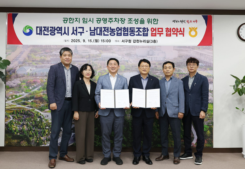 이번 협약에 따라 남대전농협은 조합 소유의 유휴부지를 무상 제공하고, 서구는 해당 용지(1,584㎡)에 약 55면 규모의 임시 공영주차장을 조성하여 주민들에게 개방할 예정이다.