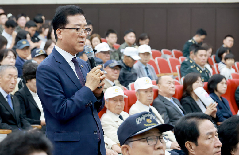 조원휘 의장은 “6월은 6·10 만세운동, 6·25 전쟁, 연평해전 등 역사적으로 자유 수호를 위한 순국선열들의 희생과 헌신이 있었고, 그로 인해 이 땅에 자유가 뿌리내릴 수 있었다”면서, “대전시는 현재 국립대전현충원 일원에 약 2만 9천평, 총사업비 3,026억 원 규모의 나라사랑공원 조성사업 추진을 위해 많은 노력을 기울이고 있고, 대전시의회에서는 참전용사들의 명예 선양을 비롯해 대전 곳곳에 호국보훈 의식이 확산되는 보훈문화 기반을 공고히 하기 위해 의회 본연의 역할에 최선을 다하겠다”고 말했다.
