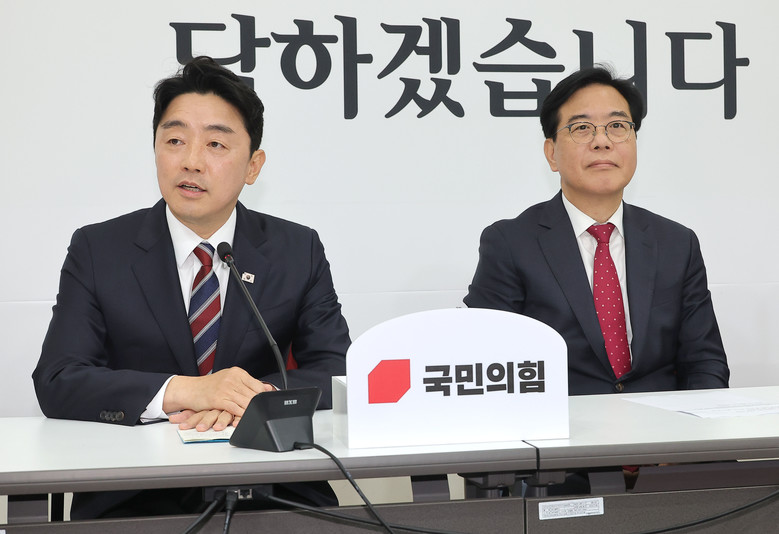 강훈식 대통령 비서실장(왼쪽)이 17일 국회에서 국민의힘 송언석 신임 원내대표를 예방해 인사말을 하고 있다. 2025.6.17