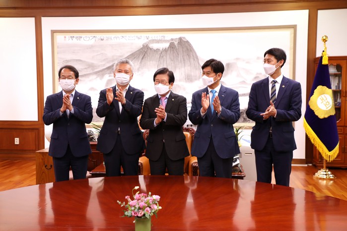 이태환 의장은 홍성국 의원과 강준현 의원, 이춘희 세종시장과 함께 박병석 국회의장과 윤호중 국회운영위원장, 송영길 더불어민주당 대표, 국민의힘 정진석 의원을 잇따라 면담하고 이날 국회 운영개선소위원회에서 합의한 ‘국회법 개정안’의 조속한 처리에 대해 의견을 나눴다.
