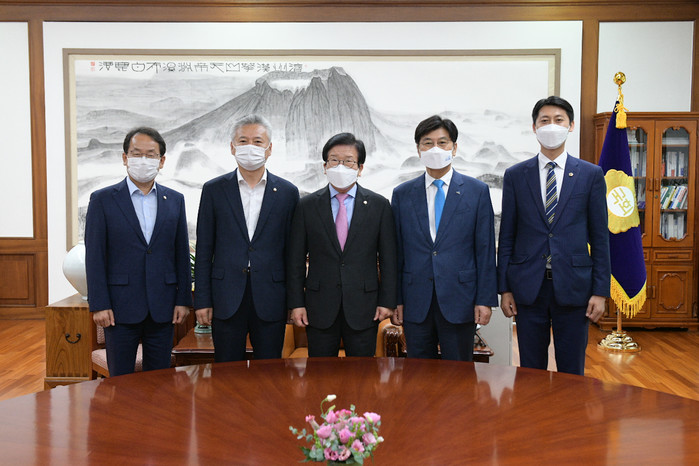 [세종=세계타임즈 이채봉 기자] 세종특별자치시의회 이태환 의장은 24일 국회를 방문해 박병석 국회의장과 윤호중 국회운영위원장과 대화를 나누고 국회 세종의사당 설치를 위한 국회법 개정안 처리 의지를 재확인했다.