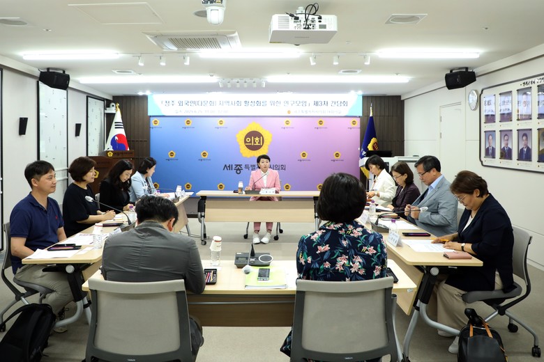 [세종 세계타임즈=이채봉 기자] 세종특별자치시의회(의장 임채성)는 25일 의회 청사 1층 대회의실에서 ‘정주 외국인(다문화) 지역사회 활성화를 위한 연구모임’(대표의원 홍나영) 제3차 간담회를 열고, 세종시 외국인 주민의 현황과 관련 정책 사례를 공유하는 시간을 가졌다.