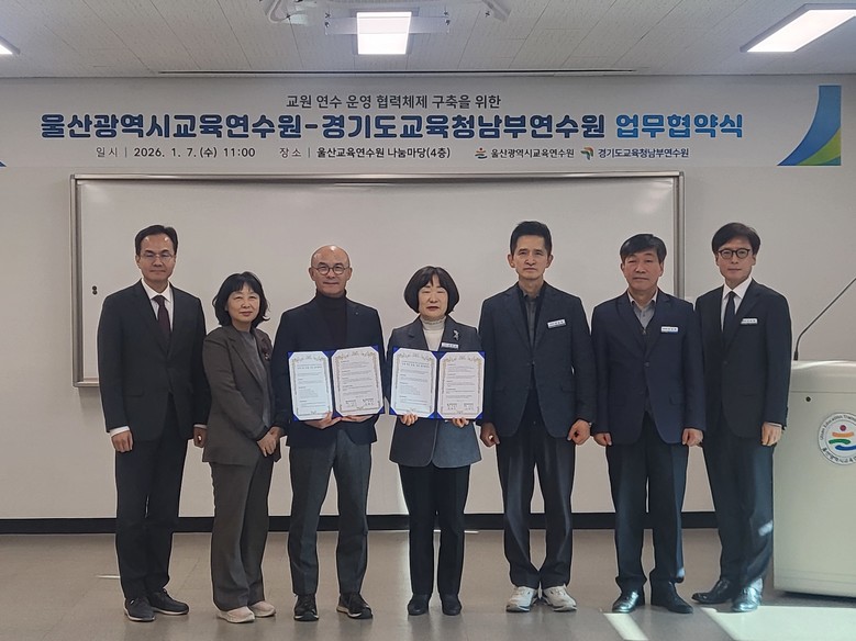 [경기도 세계타임즈=송민수 기자] 경기도교육청남부연수원(원장 심한수)이 6일 부산광역시교육청교육연수원(원장 허남조), 7일 울산광역시교육연수원(원장 한현숙)과 교원 연수 협력을 위한 업무협약(MOU)을 체결했다.