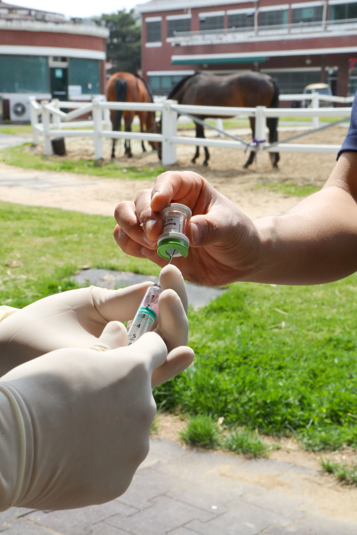 한국마사회는 ‘97년 일본 뇌염이 경주마에게 발병한 이후 철저한 질병컨트롤을 해 오고 있으며, 2009년부터 농림축산식품부 주관으로 ‘전국 말 예방 백신 접종지원’ 사업을 시행 중이다. 매년 연 2회씩 백신 접종을 실시하며 2019년도에는 2만 3천두 말에 대해 OIE에서 권장하는 균주를 포함한 말인플루엔자 백신 접종을 진행했다. 또한 접종마에 대해 매년 정부와 공동으로 항체가를 측정하고 있으며 접종마 90% 이상에서 충분한 항체를 보유하고 있음이 확인되고 있다.