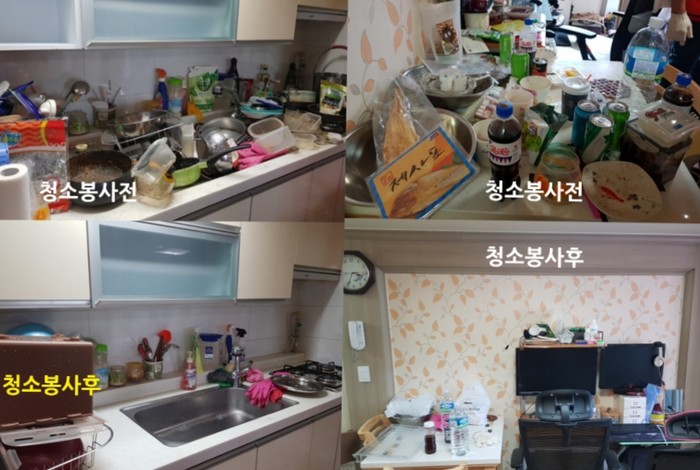 조현병과 우울증 정신장애로 혼자 거주하면서 집안 위생상태가 심각하게 지저분한 상황을 유희자 이사를 비롯한 자원봉사자 10명이 이불정리, 화장실, 주방, 냉장고등을 깨끗이 청소봉사를 하였다.