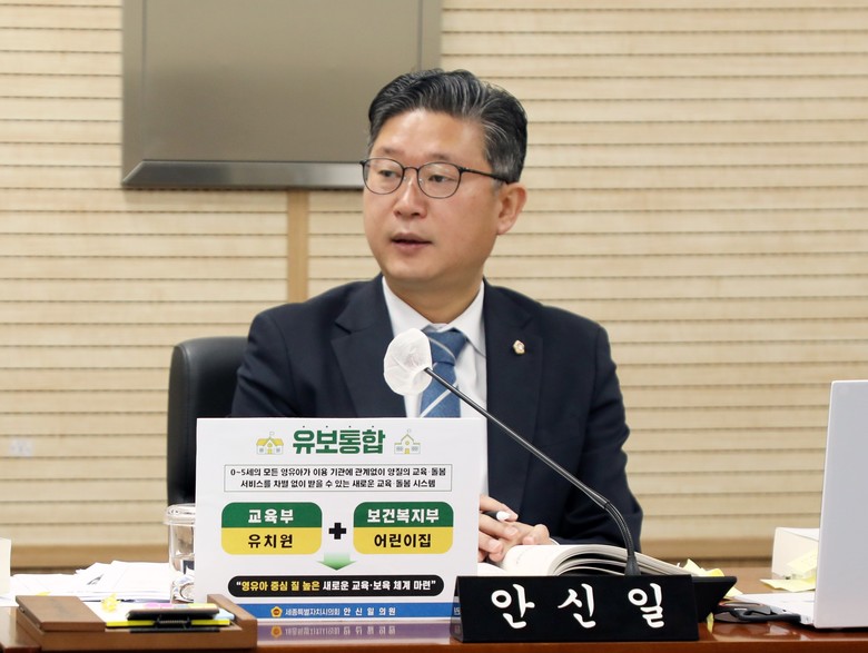 안신일 의원은 이날 “지난달 세종교육청은 2023년 유보통합 선도교육청으로 선정됐다. 이에 지역의 자원을 활용해 유치원・어린이집 간 교육・돌봄 격차를 완화하고 교육의 질을 높이기 위한 준비를 선제적으로 시행하게 됐다”면서, “유보통합, 교육자육특구, 2027 하계U대회 등 세종교육의 미래를 준비하고 뒷받침해 나가기 위해서는 큰 틀에서 정책적인 판단과 지원이 뒤따라야 한다”고 강조했다.
