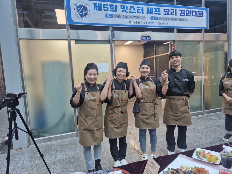 한편 마산대학교, 창원특례시 '제5회 창원맛스터 요리 경연대회'에 참가한 수많은 경쟁자를 물리치고 수상자는 대상 (은성) 김대진 대표. 상금 일백만 원 / 최우수상 (사계연화) 노하윤 대표 상금 70만 원 / 우수상 (태상굴장어구이) 강현주 대표 / 장려상(코오롱 횟집) 이민숙 대표 상금 30만 원 등 각각 수상의 기쁨을 안았다.